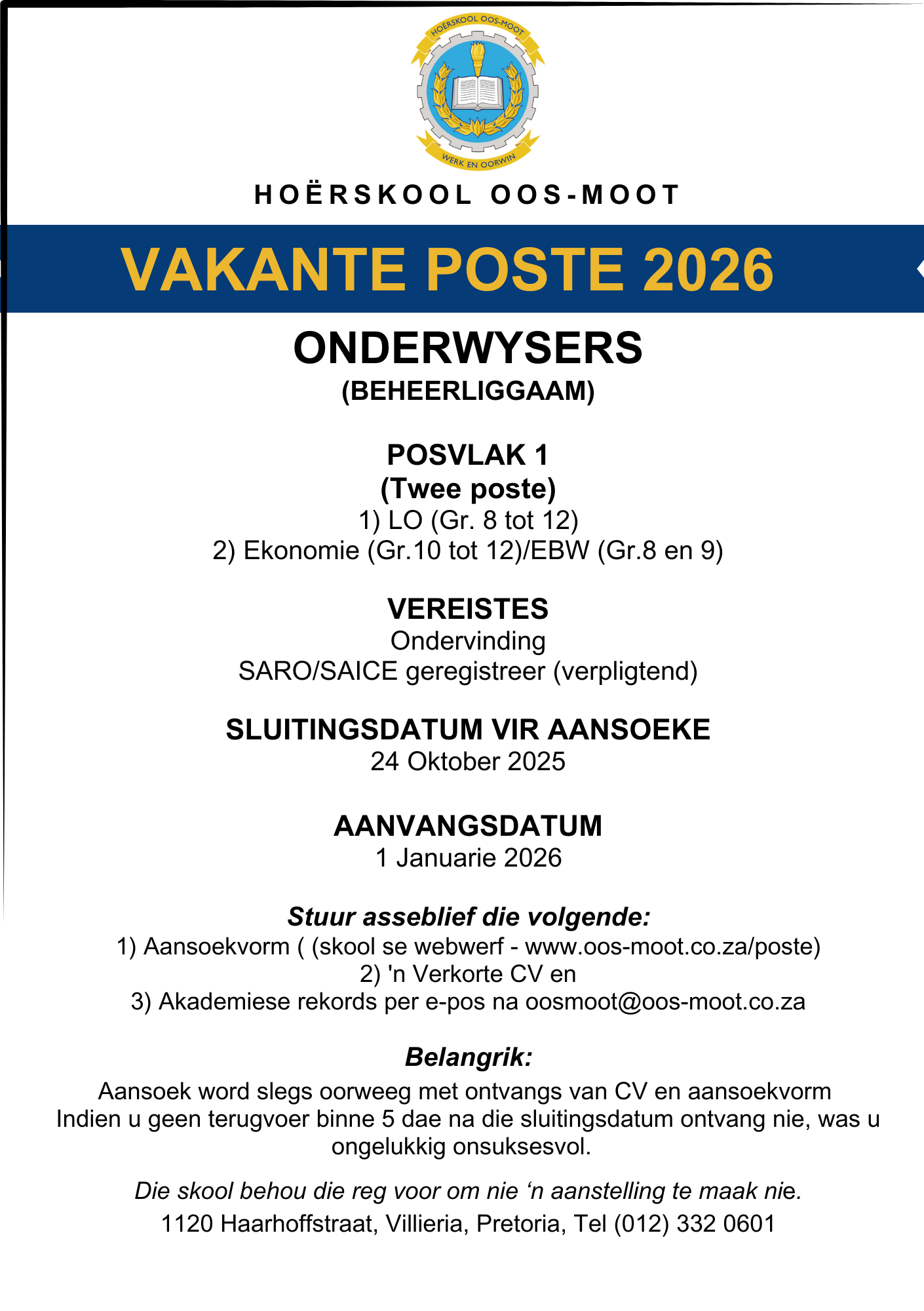 Groter skole in ander areas van Pretoria mag dalk beter lyk of klink, maar dikwels is jou kind net ’n nommer. By Oos-Moot is daar plek vir elke kind om te skitter.