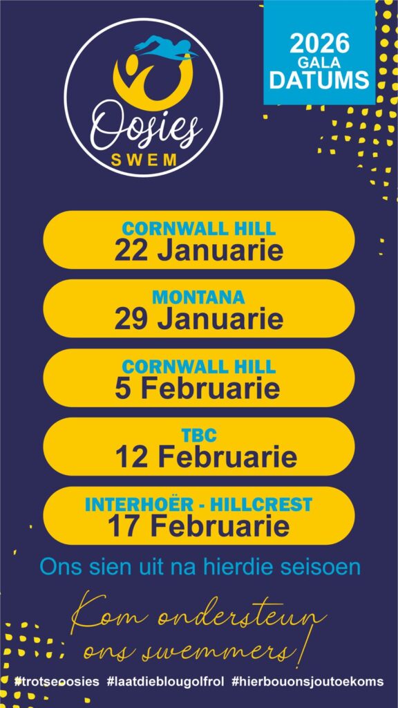 By Hoërskool Oos-Moot is ons toegewyd daaraan om swemmers geleenthede te bied om te groei, ervarings op te doen en hul volle potensiaal te bereik. Gedurende die eerste en vierde kwartaal neem ons aktief deel aan vriendskaplike byeenkomste, wat waardevolle blootstelling bied en die ideale platform skep vir vaardigheidsontwikkeling.
